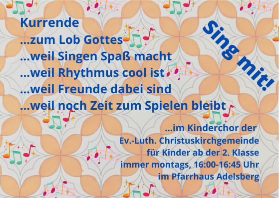 - Kindersingschule ab 28.8. montags 15:15 Uhr