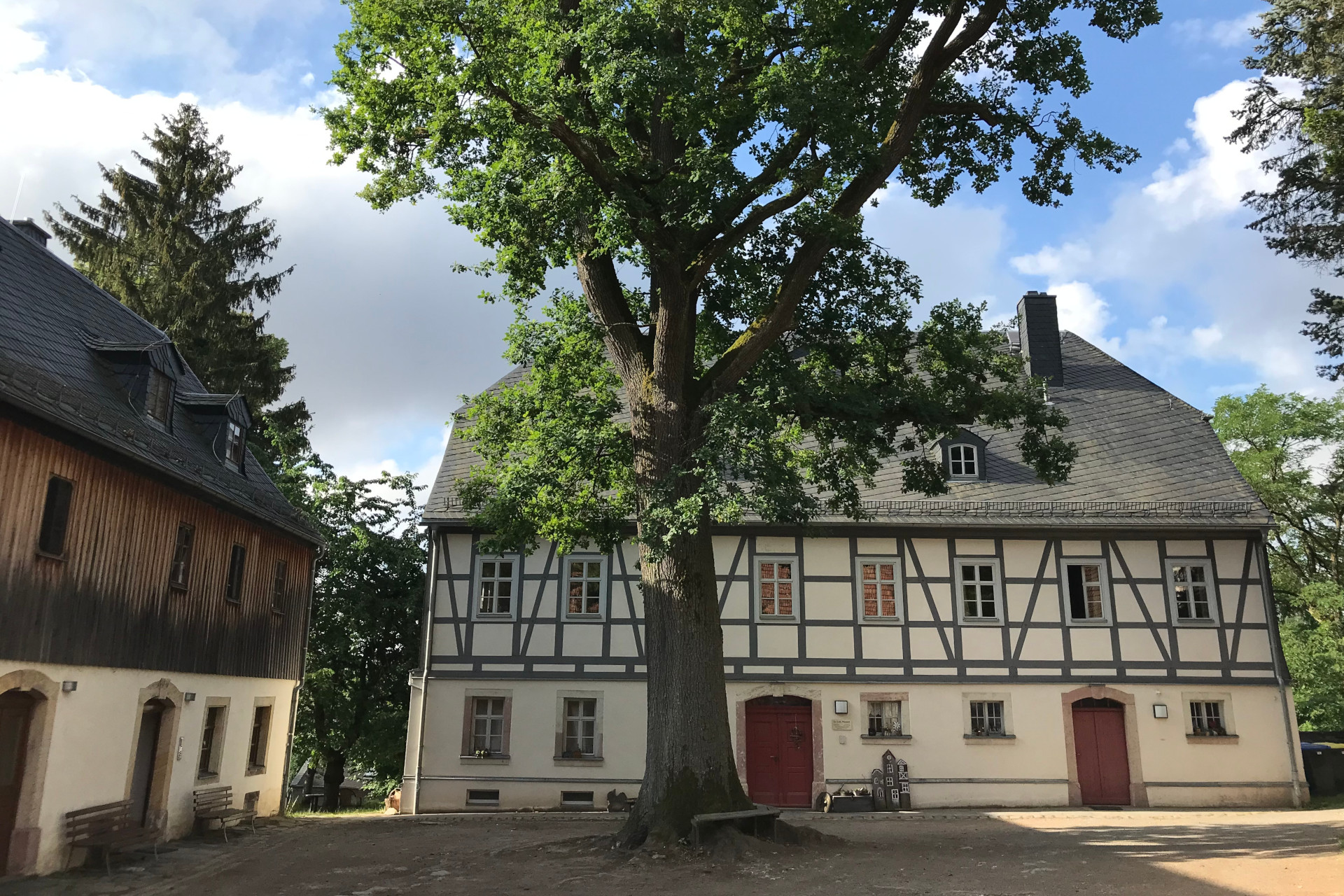 Als eine Kostbarkeit mittelalterlicher Schnitzkunst konnte aus der abgebrannten Vorgängerkirche ein Altarschrein gerettet werden. Der um 1500 vom Zwickauer Bildschnitzer Peter Breuer, bekannt als der „sächsiche Riemenschneider“, geschaffene Altar zeigt im Mittelteil die Figuren der Heiligen Martin, Fabius und Laurentius. Auf den Flügeln sind die Bilder des hl. Valentin und des hl. Benedikt sowie die Verkündigung an Maria durch den Erzengel Gabriel zu sehen. Nach neusten Erkenntnissen und Vermutungen stammen die Bilder von Hans Hesse.